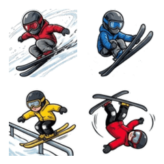 Exciting freestyle ski LINE stickers featuring jumps and tricks. Perfect for winter sports fans and energetic daily chats.