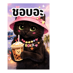 ROKA the cool black cat from Japan. Everyday Chaos stickers for tired, happy, dramatic and chill moods. Perfect for daily chats!