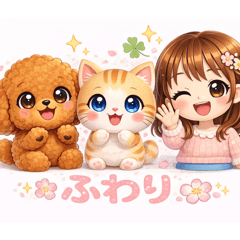Cute summer stickers of Fuwari and her dog and cat friends. Perfect for daily chats, greetings, and fun reactions. Enjoy a relaxing and kawaii summer!