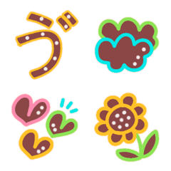 Alphabet and numbers in the colors of sakura pink, greenery, the sky and sunflowers.