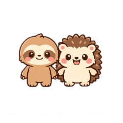 Slowy the gentle sloth and Hedgie the cheerful hedgehog. Cozy stickers for everyday.