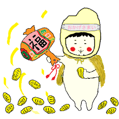 This is a Sticker featuring Warashi-chan, a zashiki-warashi (house spirit).May happiness come to you.