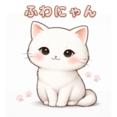 Cute and relaxed white cat "Fuwanyan" stickers for everyday use.
