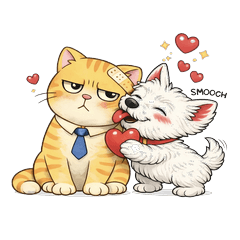 白梗永遠相信明天, 厭世貓只相信咖啡和下班。 白梗負責安慰世界,貓負責拒絕世界。 適合每天都很努力、但偶爾只想放空的人。