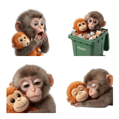 可愛的小猴子貼紙, 日本雪猴, 抱著玩偶的小猴子, 可愛動物, 可愛猴子, 搞笑貼紙, 無文字貼紙, 沒有文字, 沒有文字訊息