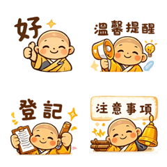本站資訊無法與官方即時同步,若官方下架時,將無法代送。價格若高於官方時請聯絡客服。 以可愛小沙彌為主角,用於禪修班日常布達與訊息交流的動態表情文字。