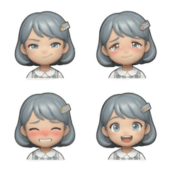 小處莉穿著格紋短洋裝、髮夾像小尺規,專注又溫柔的臉部表情貼組:從早晨的放假小確幸、母親節的害羞感謝,到廟口的虔誠祈福與畢業季的調皮祝福