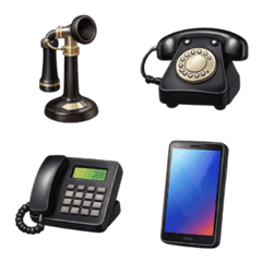 從轉盤電話到智慧手機,呈現通訊進化的趣味貼圖,結合懷舊與現代感。